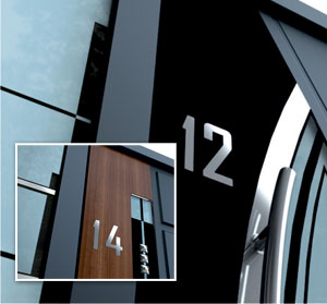 - Edelstahl-Applikationen als Schriftsatz (Hausnr., Straßennamen, etc.)